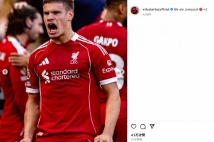 他也在赛后通过社媒晒出自己的怒吼庆祝照,并配文:“我们是利物浦!再添三分。”