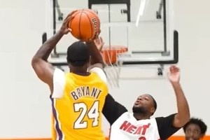 2009年的12月4日,湖人108-107战胜热火,本场最后时刻,科比迎着韦德上演正面打板三分绝杀,成为了永恒的经典。